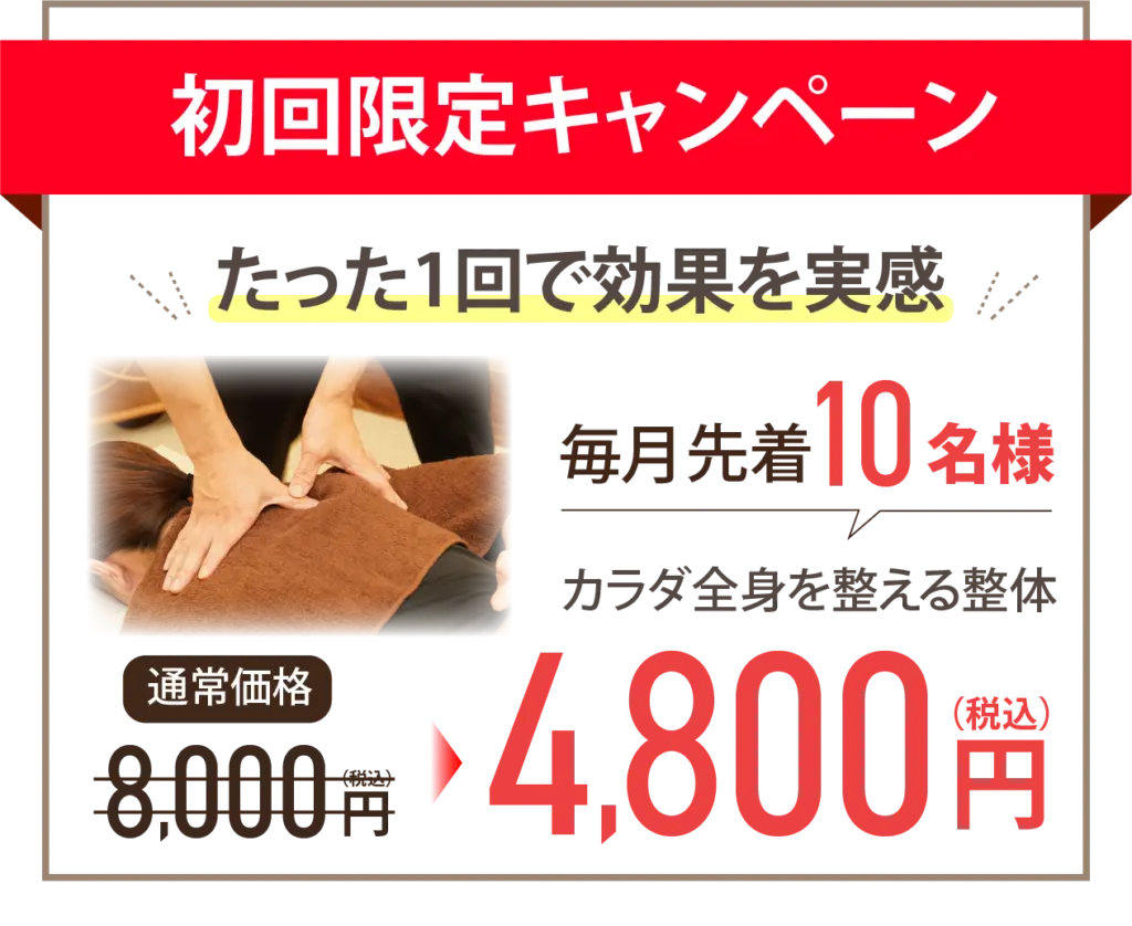 A 「健康保険+簡単整体」コースの例:施術で30~40分、その他で15分程度ですが、初回のみ説明で20~30分の時間をお取りしますので、合計で約1時間15分程度。2回目以降は説明の時間がないので、40分~50分程度です。 「肩こり整体、「腰痛整体」も同程度。 「全身整体」、「骨盤矯正」は、毎回約1時間15分程度になります。