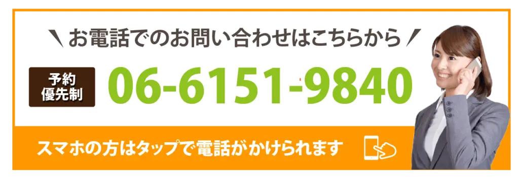 A 当日のご予約は実施しておりますが、ご希望に添えない可能性がございます。その際は、別日をご案内いたしますので、まずは受付時間をご確認の上、お電話(06-6151-9840)くださいませ。