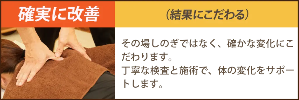 あなたの知っている整骨院は、【あと●回で終了です】と言ってくれますか? 当院の一番の特徴は、結果を出すことです。
